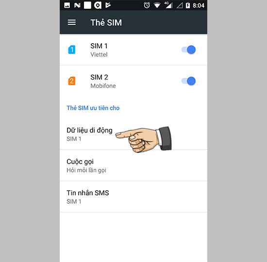 Bước 2: Chọn thẻ Sim ưu tiên của bạn.