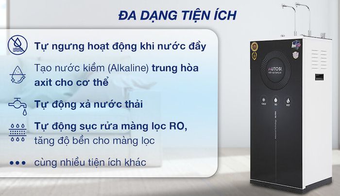 Máy lọc nước nóng lạnh Mutosi có nhiều ưu điểm nổi bật với công nghệ lọc vượt trội, xứng đáng là lựa chọn hàng đầu cho mỗi gia đình.