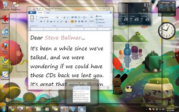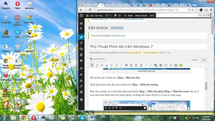 Khi nhấn tổ hợp phím này, tất cả các cửa sổ trên màn hình sẽ trở nên trong suốt, cho bạn khoảnh khắc thư giãn. Nhấn lại Windows để trở về trạng thái ban đầu.