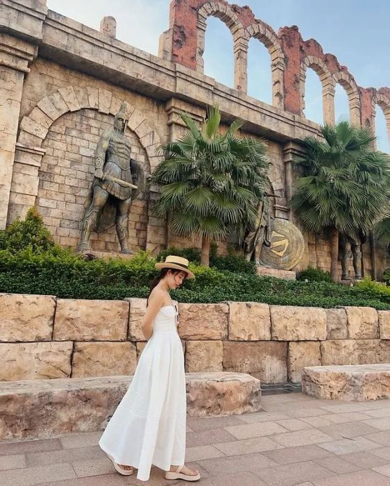 The town also features an Arc de Triomphe, European-style cafes, an ancient Roman square, and the mysterious ruins of Pompeii, inviting exploration. Other highlights include the Pencil Tower, the Dragon Staircase, and a striking ceramic road. Recently, the Kiss Bridge has become a romantic hotspot for visitors. Spanning 810 meters, its two arches frame the white sandy beach, with a unique 30cm gap bridged only by passionate kisses.