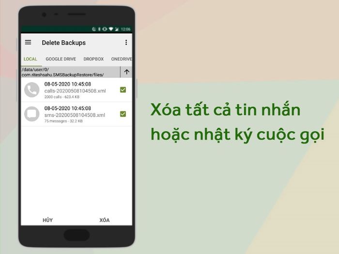 Giải phóng không gian lưu trữ trên điện thoại bằng cách xóa nhanh chóng tin nhắn và cuộc gọi đã sao lưu từ SMS Backup & Restore.