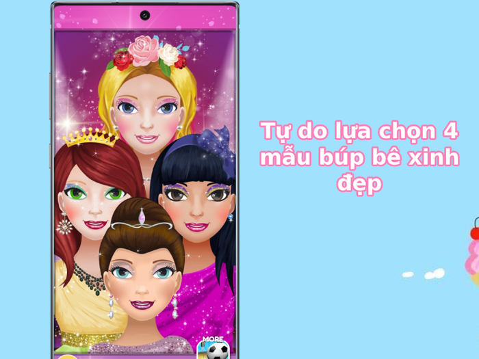 Với 4 lựa chọn búp bê xinh đẹp, ứng dụng cho phép các bé tự do chọn lựa để trang điểm theo ý thích của mình.