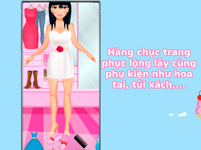 Với bộ sưu tập trang phục đa dạng và phụ kiện như hoa tai lấp lánh, vòng cổ, túi xách sang trọng,... ứng dụng này sẽ làm cho cô bé búp bê của bạn trở nên thật sự lộng lẫy và thu hút, đánh cắp trái tim của nhiều chàng hoàng tử.