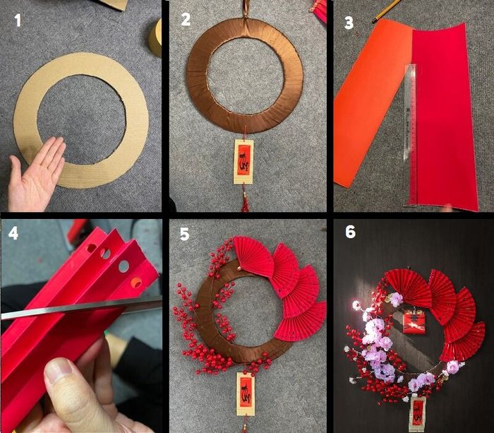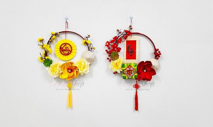 - Step 2: Use Tet decorative hanging string to secure and tie at the top of the circle for both decoration and hanging purposes after completion.