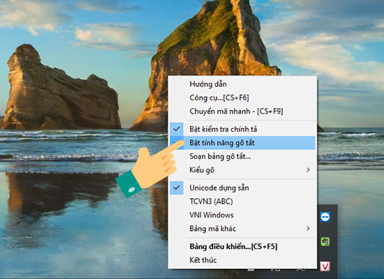Step 6: Right-click on the Unikey icon and select enable the shortcut typing feature to start using shortcuts.