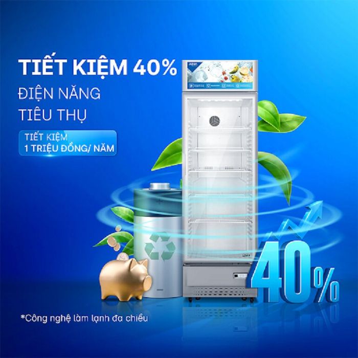 The Aqua single-door 235-liter AQS-AF340N fridge saves energy much more efficiently than other conventional devices thanks to its intelligent centrifugal fan design. This component reduces power consumption. Additionally, the cold vapor outlets will significantly improve cooling efficiency, reducing compressor operation time and saving up to 40% energy.