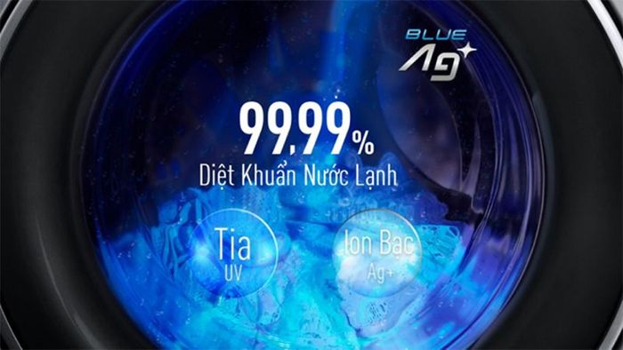 Khả năng diệt khuẩn của Công nghệ Blue Ag+ lên tới 99,99% khi sử dụng nước lạnh, đặc biệt loại bỏ hiệu quả khuẩn E.coli và khuẩn tụ cầu vàng Staphylococcus aureus.