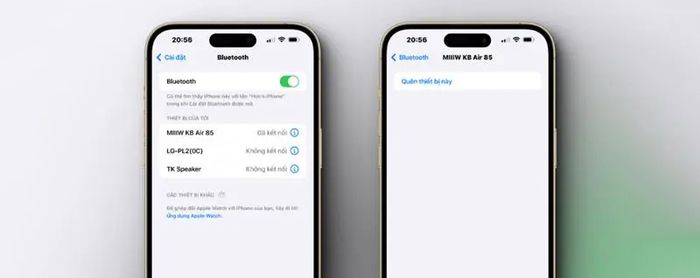 Cách tắt bàn phím Bluetooth trên iPhone rất đơn giản, bạn chỉ cần truy cập Cài đặt > Bluetooth > Nhấn vào bàn phím Bluetooth đang kết nối > Chọn quên thiết bị này.