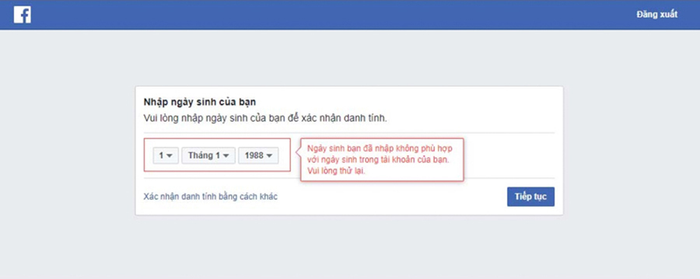 Để gỡ Checkpoint Facebook thông tin ngày sinh, bạn thực hiện tương tự như Checkpoint hình ảnh. Nhập đúng thông tin ngày, tháng, năm sinh đã điền khi đăng ký tài khoản. Lưu ý: Nếu ngày sinh bạn đăng ký là ảo hoặc hiển thị ở chế độ “Chỉ mình tôi,” xác minh thông tin có thể mất thêm thời gian.
