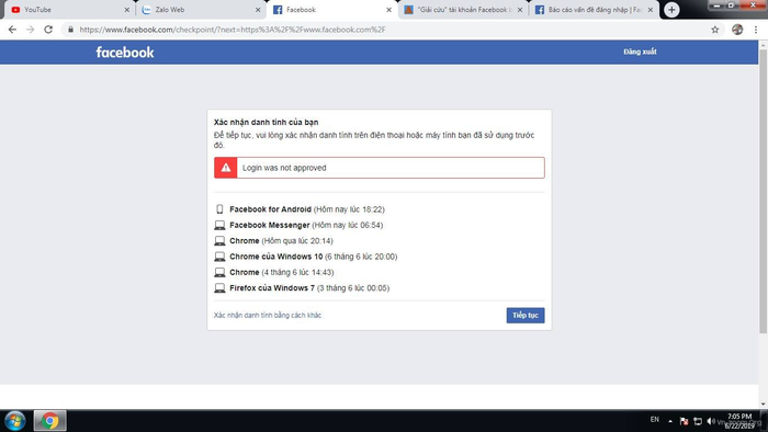 Để giải quyết nhanh chóng lỗi Checkpoint trình duyệt, bạn đăng nhập thành công trên một trình duyệt cũ. Sau đó, đăng nhập trên trình duyệt mới và Facebook sẽ gửi yêu cầu xác minh đến tài khoản trình duyệt cũ. Bạn chỉ cần nhấp đồng ý trên trình duyệt cũ là xong.