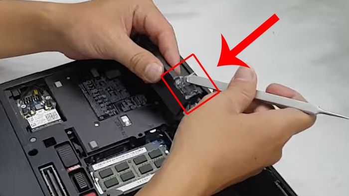 Sử dụng tua vít để tháo loa ra khỏi laptop