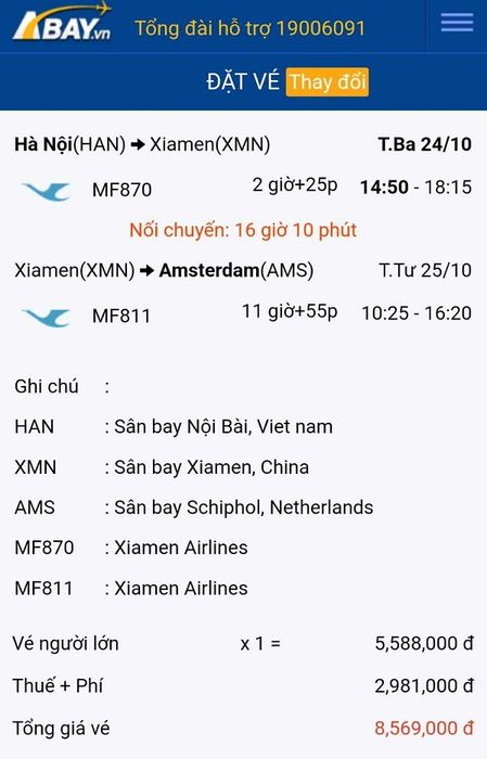 Giá vé trên hành trình này được đánh giá là khá hiếm gặp, do hãng hàng không Xiamen Airlines mở bán với chuyến bay khởi hành lúc 14h50. Chọn bay cùng Xiamen Airlines từ Hà Nội đi Amsterdam, bạn sẽ quá cảnh tại Hạ Môn (Trung Quốc) trong khoảng 16 giờ 10 phút, tổng thời gian bay từ Hà Nội đến Amsterdam là khoảng 30 giờ 30 phút.