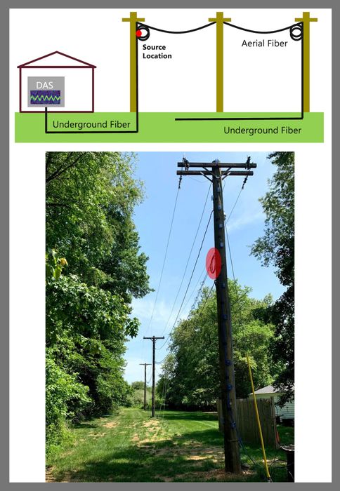 Nhóm của Ozharar tập trung vào một vòng cáp trên đỉnh một trong ba cột điện tiện ích, mà bạn có thể thấy trong ảnh ở trên. (Vòng được làm nổi bật bằng màu đỏ.) “Nếu sợi quang ở dạng thẳng, âm thanh tương tác với sợi quang chỉ một lần và sau đó tiếp tục di chuyển,” Ozharar nói. “Nhưng nếu bạn có một vòng, tín hiệu giống nhau di chuyển qua sợi quang nhiều lần.” Điều này làm cho hệ thống trở nên nhạy hơn nhiều, giống như việc ghi âm một buổi hòa nhạc với nhiều micro hơn, thay vì chỉ một người hâm mộ trong đám đông tự ghi lại bằng điện thoại thông minh của họ.
