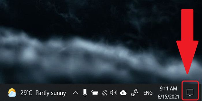 Mục 1: Nhấn nhẹ vào biểu tượng hình vuông (Quản lý thông báo) ở góc dưới bên phải màn hình.