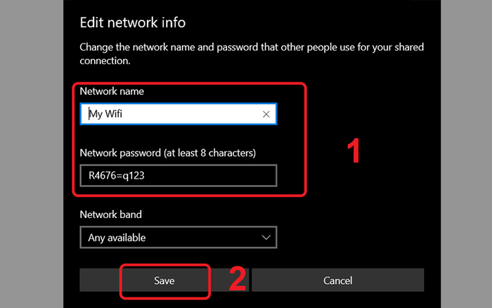 Thiết lập tên và mật khẩu cho điểm phát WiFi nếu cần