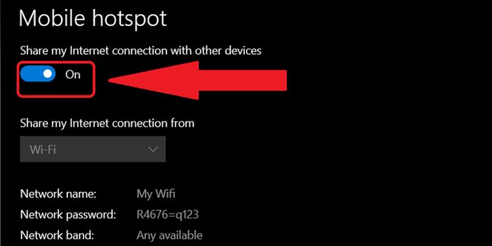 Bước 6: Ở mục Chia sẻ kết nối Internet với các thiết bị khác, bật chế độ On để kích hoạt điểm phát WiFi.