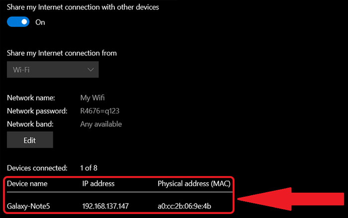Khi một thiết bị kết nối, bạn sẽ có thông tin chi tiết về thiết bị đó, bao gồm tên và địa chỉ IP...