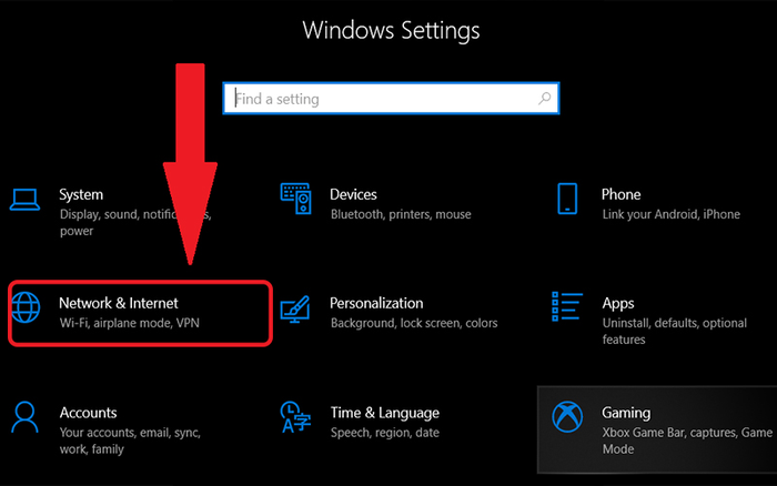 Bước 3: Lựa chọn mục Mạng & Internet.