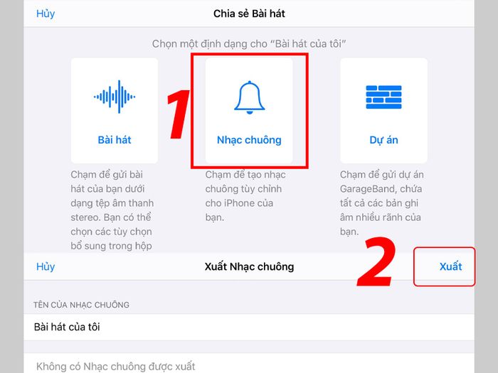 Bước 9: Tiếp theo, hãy chọn Nhạc chuông > Nhấn Xuất để hoàn tất.