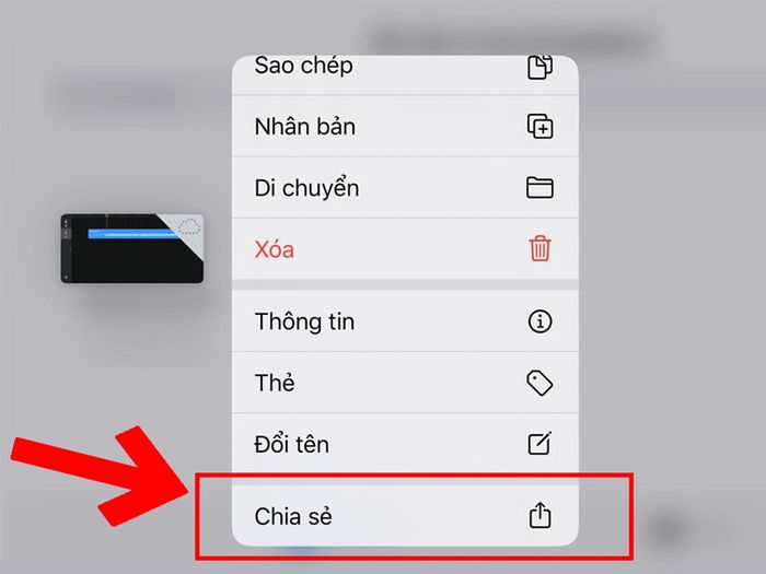 Bước 8: Giữ chặt vào bản nhạc đã lưu > Nhấn Chia sẻ. Nếu không thấy mục Chia sẻ, bạn kéo menu lên.