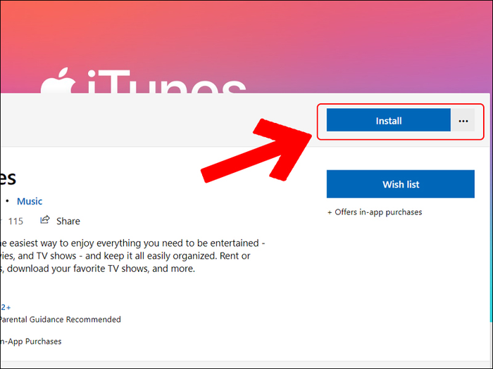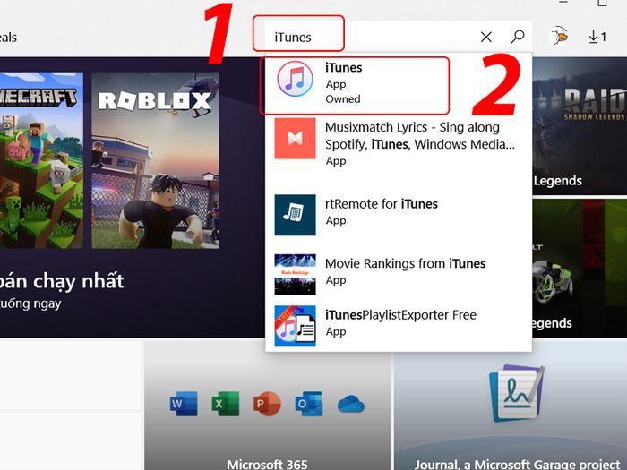 Bước 1: Mở Microsoft Store, sau đó tìm kiếm iTunes trong ô tìm kiếm > Nhấp vào biểu tượng iTunes như hình ảnh dưới đây.