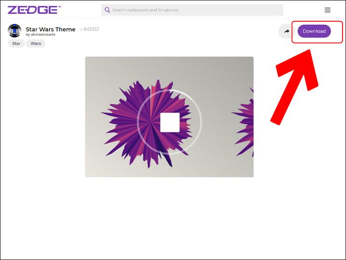 Bước 1: Truy cập trang chủ của Zedge > Chọn bài nhạc chuông và bấm nút Tải xuống.