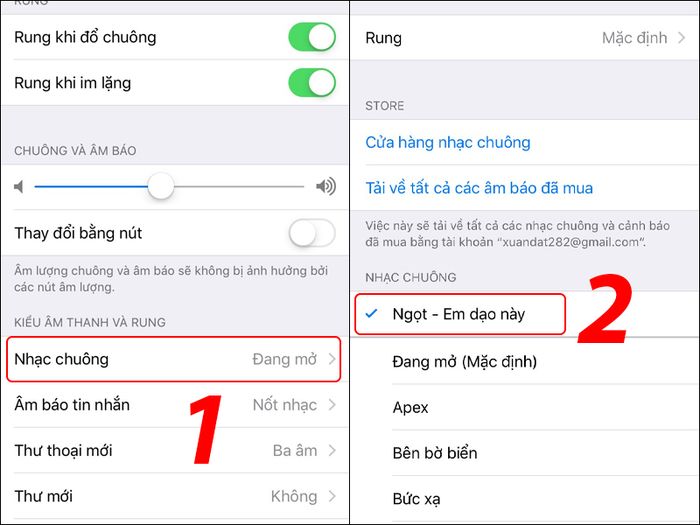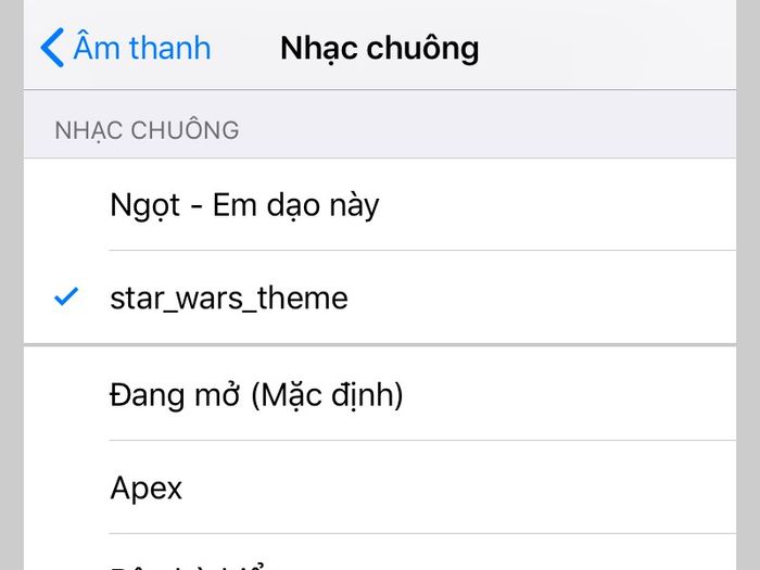 - Sau đó chọn Nhạc chuông > Chọn bài hát bạn muốn làm nhạc chuông.