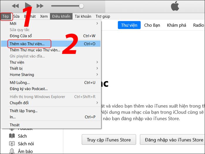 Bước 6: Click vào Tệp > Chọn Thêm vào thư viện và chọn bài nhạc bạn muốn sử dụng.