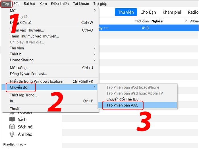 Bước 9: Trong giao diện chính, chọn Tệp > Chọn Chuyển đổi > Chọn Tạo phiên bản AAC.