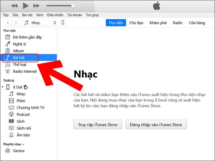 Bước 5: Ngay sau khi kết nối, bạn click vào Bài hát.