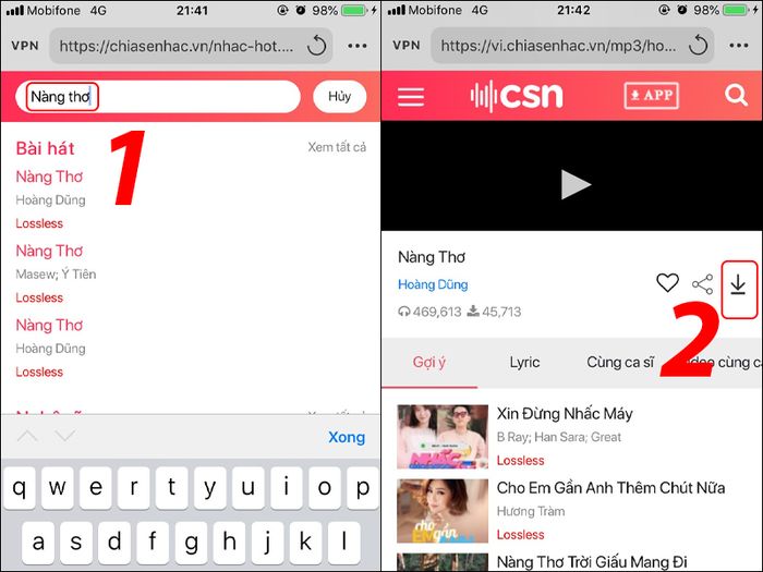 Bước 3: Trong hướng dẫn này, tôi tải nhạc từ trang web Chia sẻ nhạc. Bạn nhập tên bài hát vào ô tìm kiếm > Nhấn Tải về.