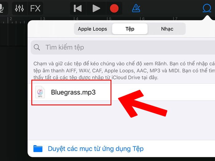 Lưu ý: Nếu bạn đã sao lưu file nhạc trên máy, hãy nhấn vào Tệp. Trong hướng dẫn này, chúng ta sẽ chọn nhạc từ iCloud.