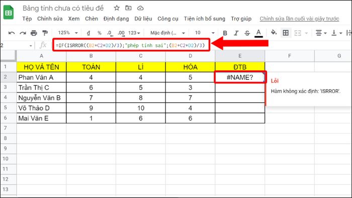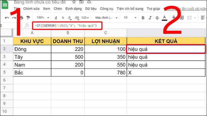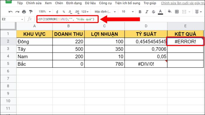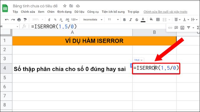 2. Sử dụng hàm ISERROR trong Google Sheet