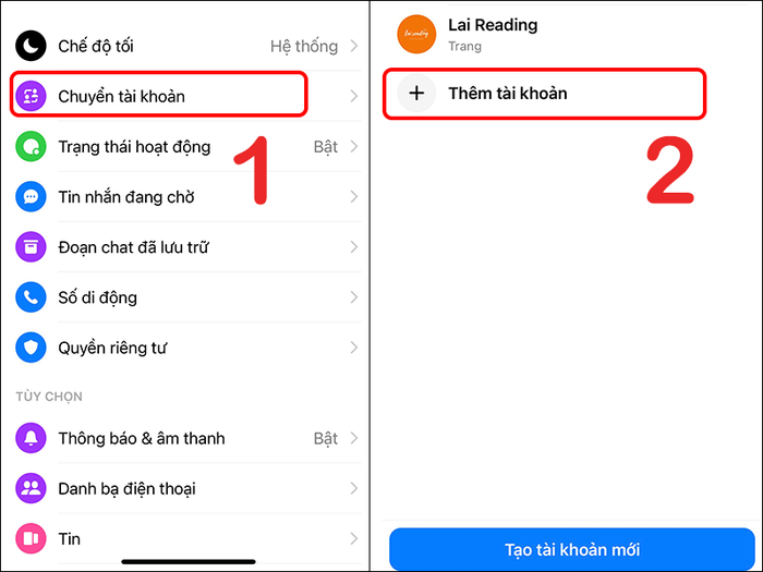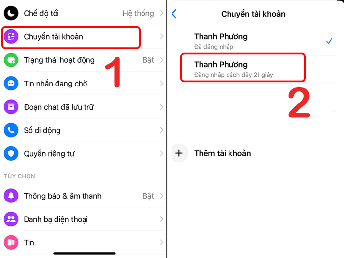 Để chuyển tài khoản Messenger, bạn thực hiện các bước sau: