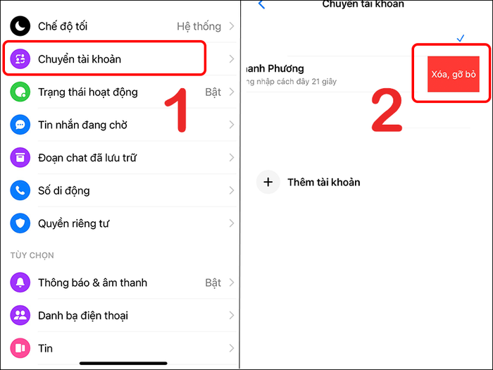 Xóa, gỡ bỏ tài khoản Messenger khỏi thiết bị.
