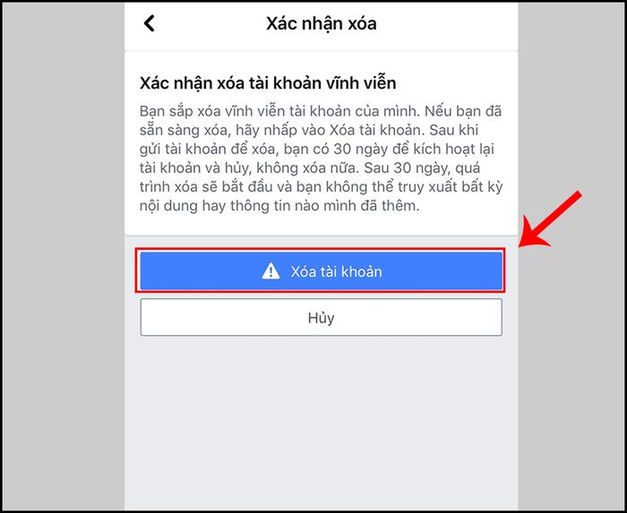 Cuối cùng, bạn lựa chọn Xóa tài khoản để xác nhận việc xóa tài khoản vĩnh viễn.