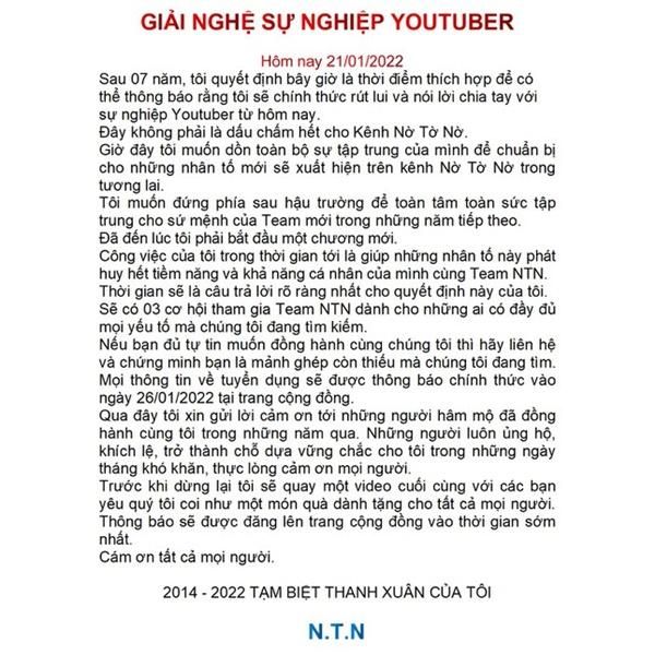 NTN tuyên bố dừng lại hành trình làm YouTube đầu năm 2022, nhưng liệu quay trở lại của anh có phải là một bước đi chân thành hay không?