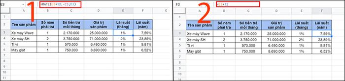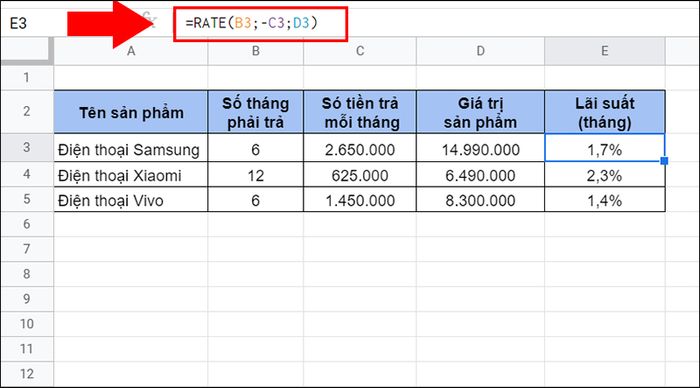 3. Hướng dẫn sử dụng hàm RATE trong Google Sheet