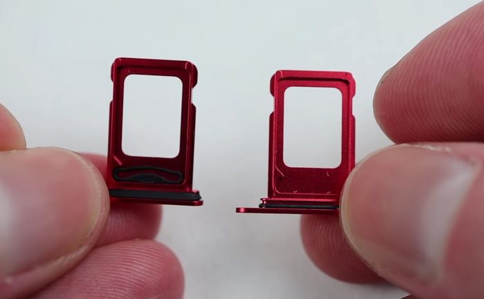 Trên iPhone Trung Quốc, có hai khay sim được thiết kế với phần zoăn cao su ở mặt sau để giữ chặt sim thứ hai.