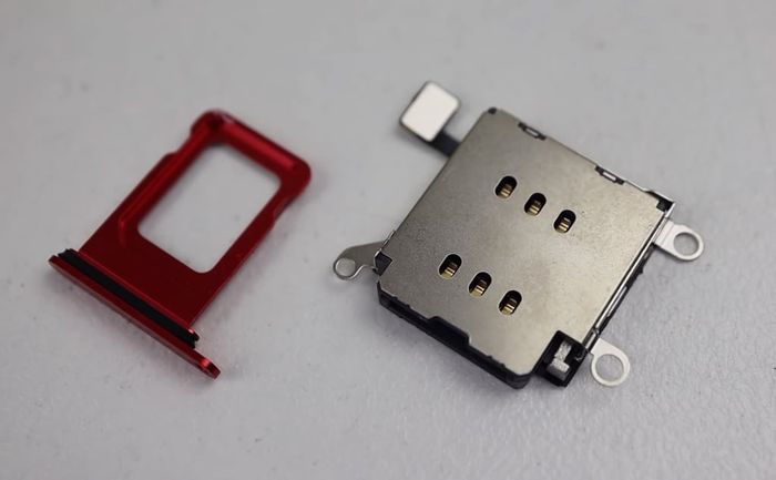Trong mạch đọc sim của iPhone Trung Quốc có 2 phần chân ở phía trên và dưới để tiếp xúc với 2 sim vật lý.