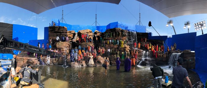 Những lo ngại này được coi trọng nhất tại Thác Chiến Binh, một bối cảnh phức tạp của Wakanda là nơi diễn ra các phân đoạn chiến đấu quyết định của bộ phim. Mặc dù địa điểm lấy cảm hứng từ khu vực đồi Oribi ở Nam Phi, bộ phim đã xây dựng một bộ phim lớn tại Georgia trong thời gian bốn tháng. Việc thiết kế cảnh quay với nước và gió mạnh không hề dễ dàng cho quá trình quay, đặc biệt là cần ánh sáng tự nhiên—đó là nơi gaffer Dan Cornwall, người chịu trách nhiệm về ánh sáng của cảnh, phải đảm nhận.