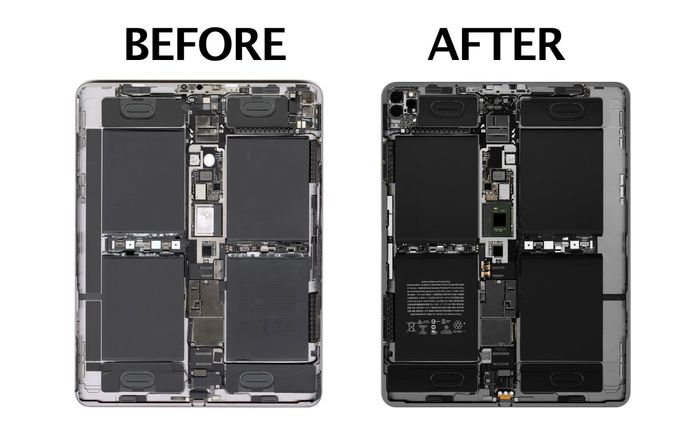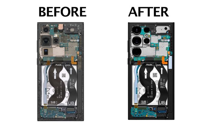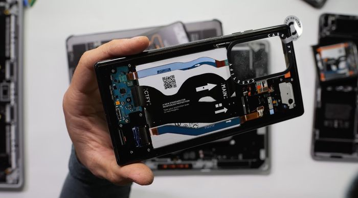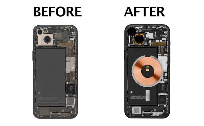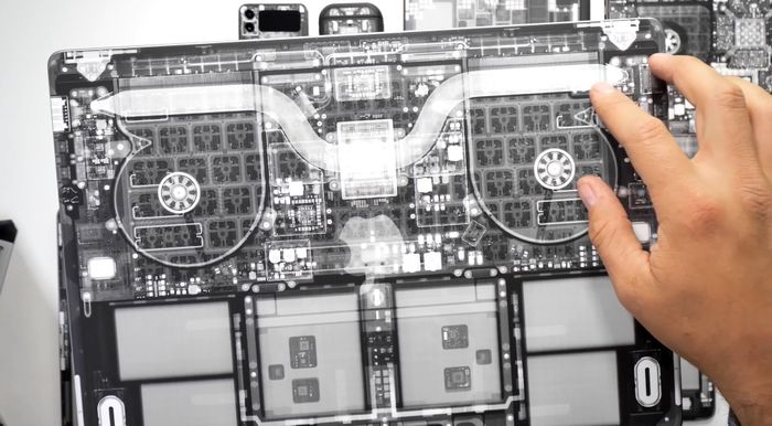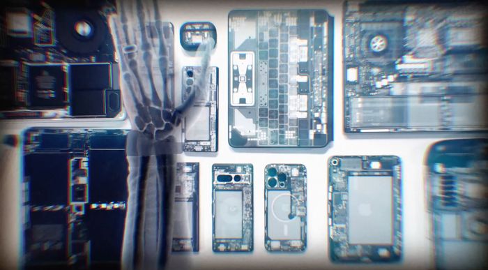 Mỗi thiết bị sau khi mở nắp lưng sẽ được scan với độ phân giải 2,400 dpi để tạo ra những tấm hình độ phân giải cực cao là 41,000 x 30,000 dpi, sau đó mới được chỉnh sửa từng chi tiết. Ở hình trên là iPhone.