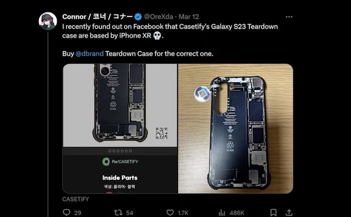 Youtuber JerryRigEverything sau đó đã mua các sản phẩm dòng ốp Casetify Inside Out để kiểm tra, và kết quả cho thấy vụ việc ăn cắp rất rõ ràng, đặc biệt là với ốp của Samsung S23 Ultra.