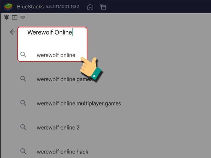 Mở Bluestacks > Vào cửa hàng trò chơi > Chọn thanh tìm kiếm > Tìm kiếm game Werewolf Online > Bấm cài đặt > Đợi quá trình tải game diễn ra > Khi cài đặt hoàn tất, bạn có thể bắt đầu trải nghiệm game.
