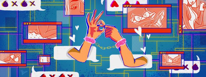 Sexting refers to the exchange of messages about romantic matters via electronic devices. Illustrator: Hina.