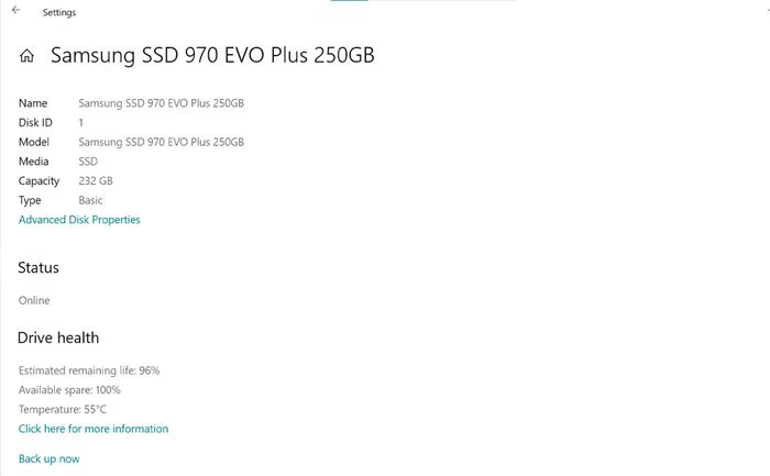 Trong các phiên bản Insider trước đó, Microsoft đã thêm một tính năng mới là quản lý ổ đĩa Disk Management trong Windows Settings. Tại đây, người dùng có thể xem và quản lý các phân vùng ổ đĩa trên máy tính của mình. Đồng thời, các tính năng nâng cao cũng có thể thực hiện tại đây như phân vùng, tối ưu hóa hay cài driver. Ngoài ra, người dùng còn có thể xem tình trạng của ổ đĩa như nhiệt độ, tuổi thọ cũng như dung lượng.