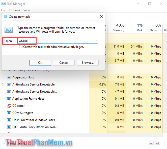 Mở Windows Terminal bằng cách sử dụng Task Manager