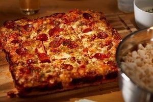 Pizza kiểu Detroit, 550°F — Pizza kiểu Detroit deep dish là sự kết hợp tốt giữa một lát pizza cổ điển và Chicago deep dish. Chuẩn bị trong khuôn nướng hình chữ nhật, pizza Detroit cũng dày hơn bình thường, với lớp phô mai giòn dọc theo mép và đầy đủ sốt và nguyên liệu trang trí. Tuy nhiên, nó không hề đáng sợ như một chiếc bánh deep dish đầy đủ.