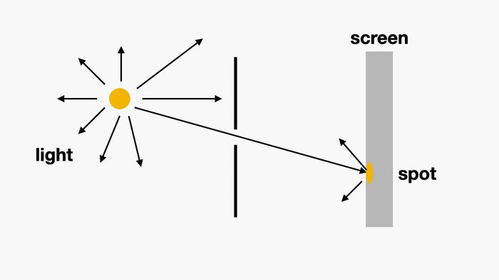 Hầu hết các tia sáng đi theo hướng khác nhau và có câu chuyện riêng trong một bài đăng trên blog khác. Một số tia chúng đập vào rào cản và phản xạ hoặc bị hấp thụ. Nhưng một vài, ở góc đúng, đi qua lỗ đến màn hình xem. Những tia này sau đó phản xạ từ màn hình và tạo ra vẻ như là một điểm sáng.