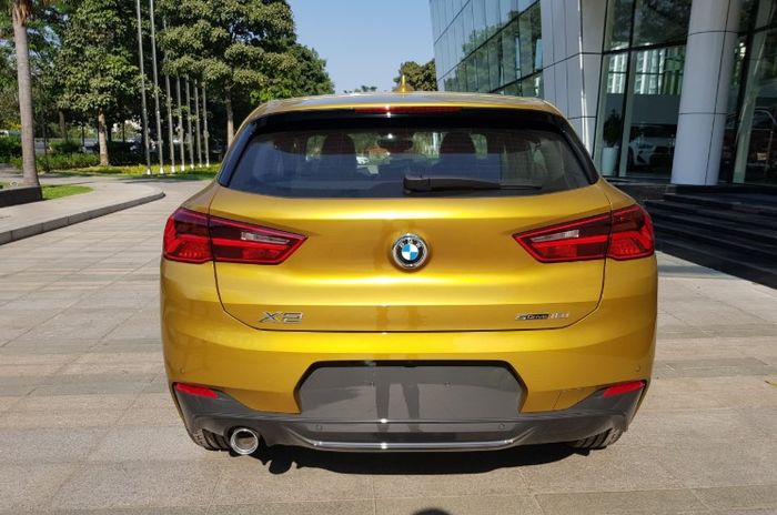 BMW X2 sDrive18i 2019 sử dụng cặp đèn hậu LED giống như bản cao cấp. Ngoài ra, đuôi xe X2 trang bị đèn phanh kết hợp cánh lướt gió trên cao, ăng ten cá mập trên nóc, tay nắm cốp tích hợp thông minh với logo. Sự khác biệt lớn nhất ở đuôi bản X2 sDrive18i so với bản cao cấp là chỉ có một ống xả đơn bằng crom nằm bên trái, thay vì hai bên đối xứng.
